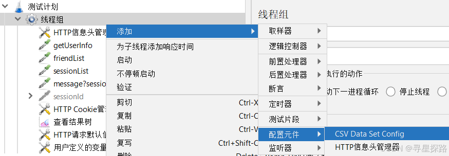 添加方式:线程组⸺配置元件⸺CSV数据文件设置