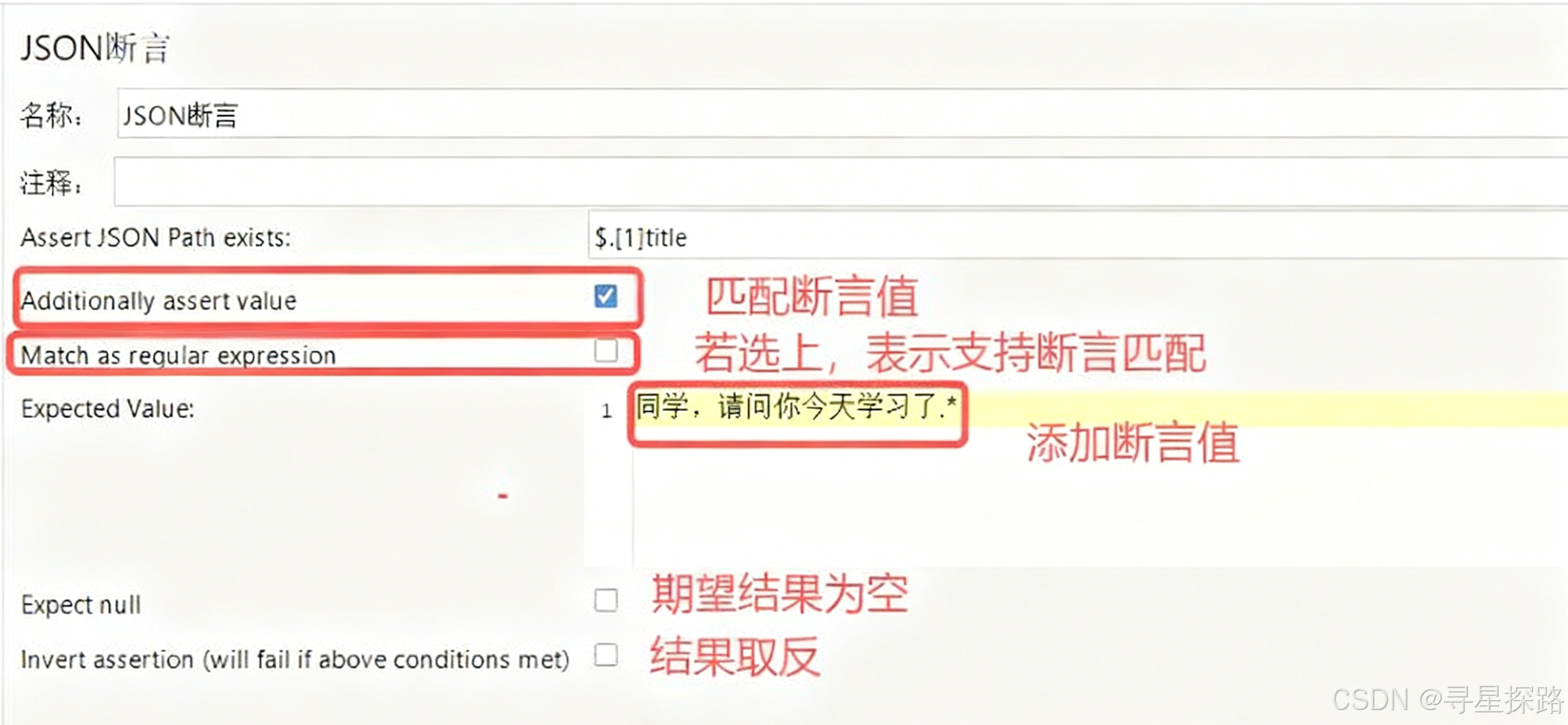 2)选择Additionally assert value,则必须添加ExpectedValue期望的断言值