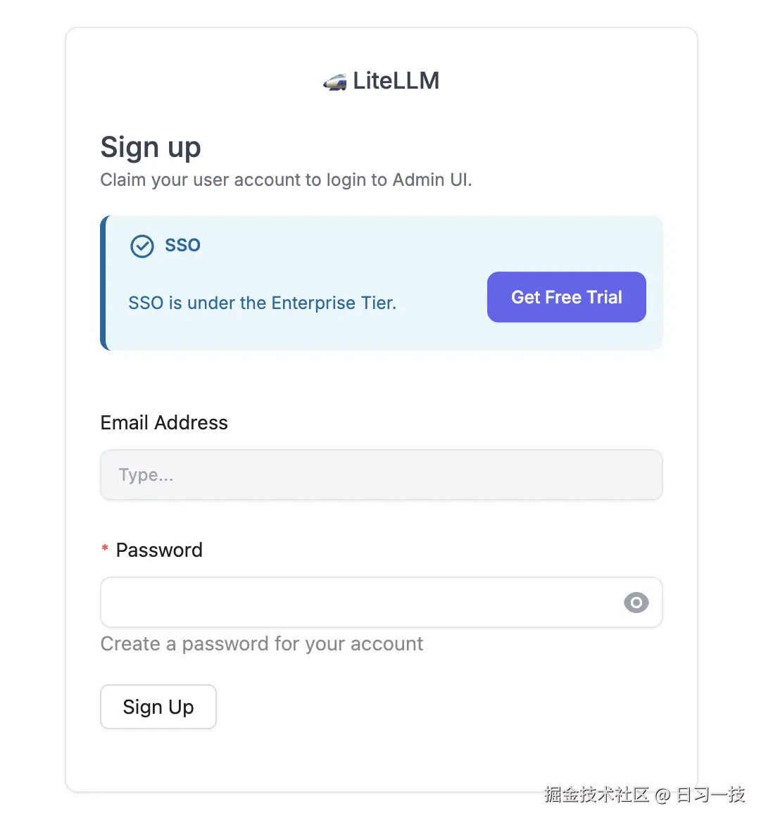 上面创建的这些用户,无论是组织管理员、团队管理员还是团队用户,目前都无法登录平台,只能通过 API Key 来进行管理操作,这是相当繁琐的。LiteLLM 支持用户自助服务,它让用户可以在不依赖管理员的情况下管理自己的密钥和查看使用情况。