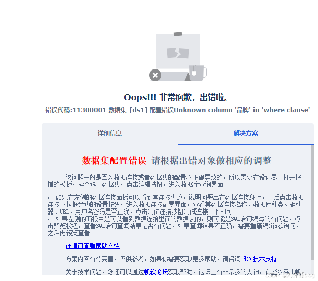 需注意:SQL语句中的where后面的值必须为表头中包含的字段,否则需要重新定义导致预览失败