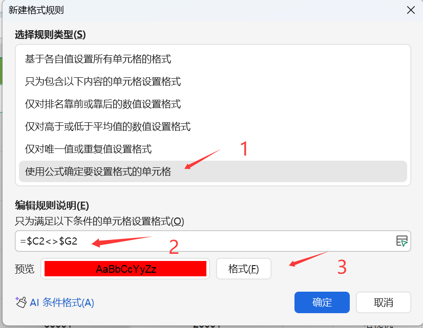 在弹出的对话框中,选择规则类型为 「使用公式确定要设置格式的单元格」。