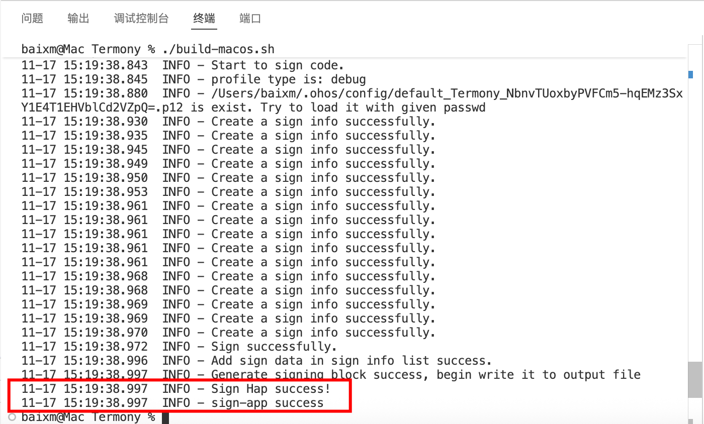 - 签名配置后,构建脚本会自动签名 HAP 包