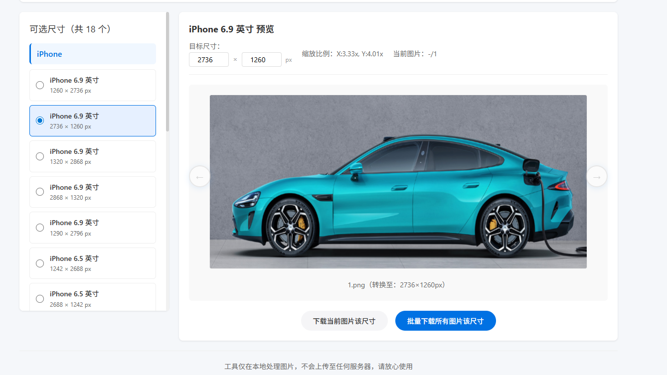 无论是独立开发者快速上架产品,还是小工作室节省设计成本,这款 iOS App Store 图片尺寸转换工具都能成为你的高效助手 ------ 无需专业技能,无需担心隐私,轻松实现全设备尺寸适配,让每一张宣传图都符合官方标准,助力你的 App 顺利上架、高效推广!