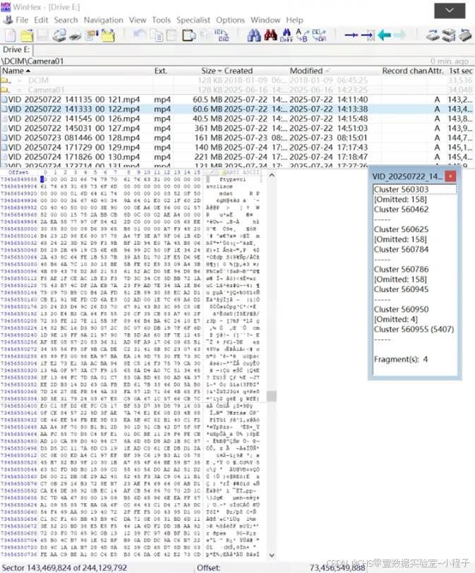 无论是lrv还是mp4都有一个共同点,那就是碎片数量极多,经过分析两个文件是对同一场景同时采集然后交叉写入,这也是多数同类设备的基本写入原理。采用这种方案的一旦删除或者格式化后通用类恢复软件是无能为力的(感兴趣的可以看下博主的相关帖子)。
