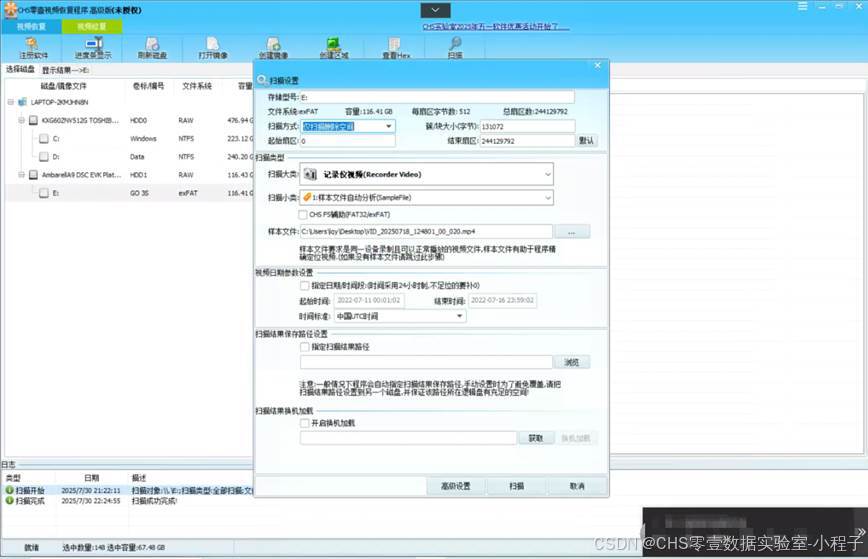 针对影石(insta360) GO3S运动相机格式化,我们直接使用CHS零壹视频恢复程序高级版进行扫描。