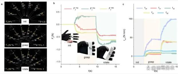 优势:实现了"一石多鸟"------仅用一个低成本相机,就替代了数十个传统的力/力矩和位置传感器,实现了对18个关节角度、外部力矩、指尖接触力乃至物体柔软度和轮廓的多模态感知,大幅降低了系统的复杂性、故障率和成本。