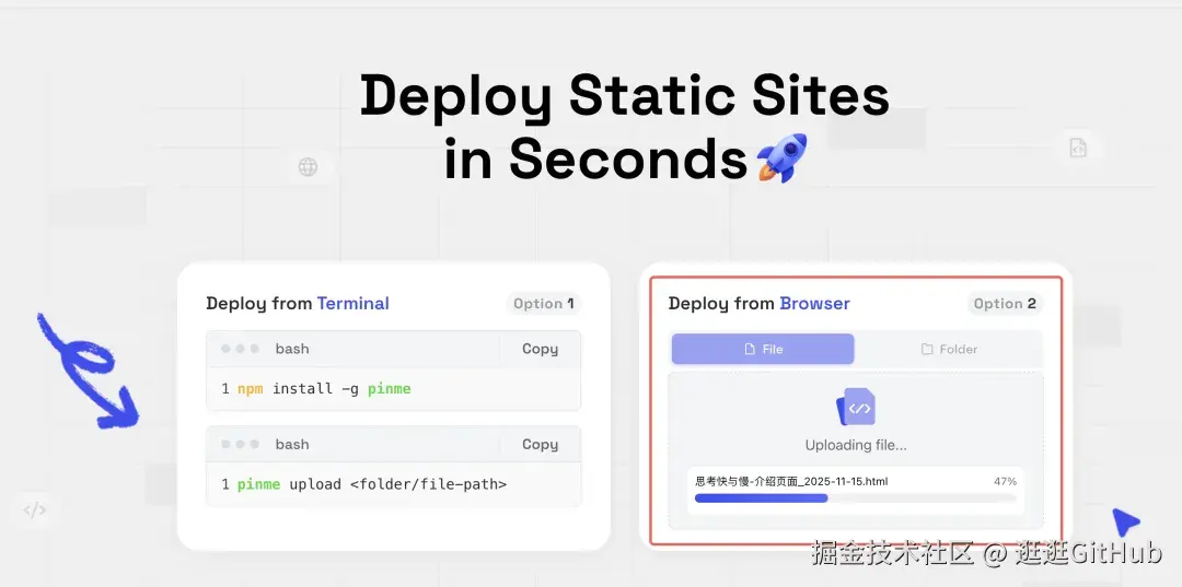 如果你需要快速、免费地分享一个前端页面,比如 Demo、简历、作品集,PinMe 提供了一个近乎完美的解决方案,让你不再为临时部署而烦恼。