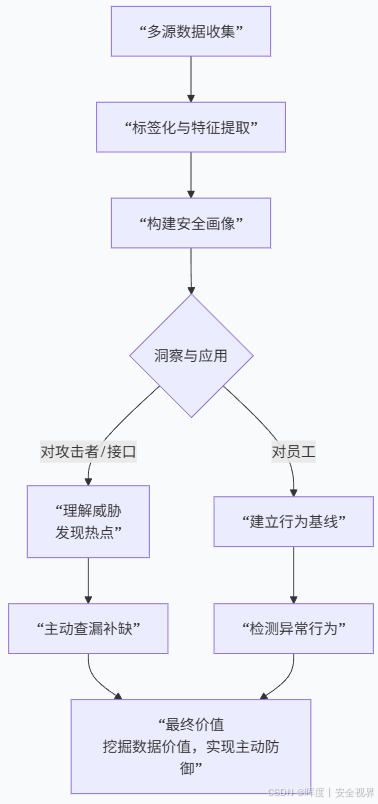 安全画像的终极目标是将数据转化为可操作的洞察,其工作流程与核心价值如下图所示: