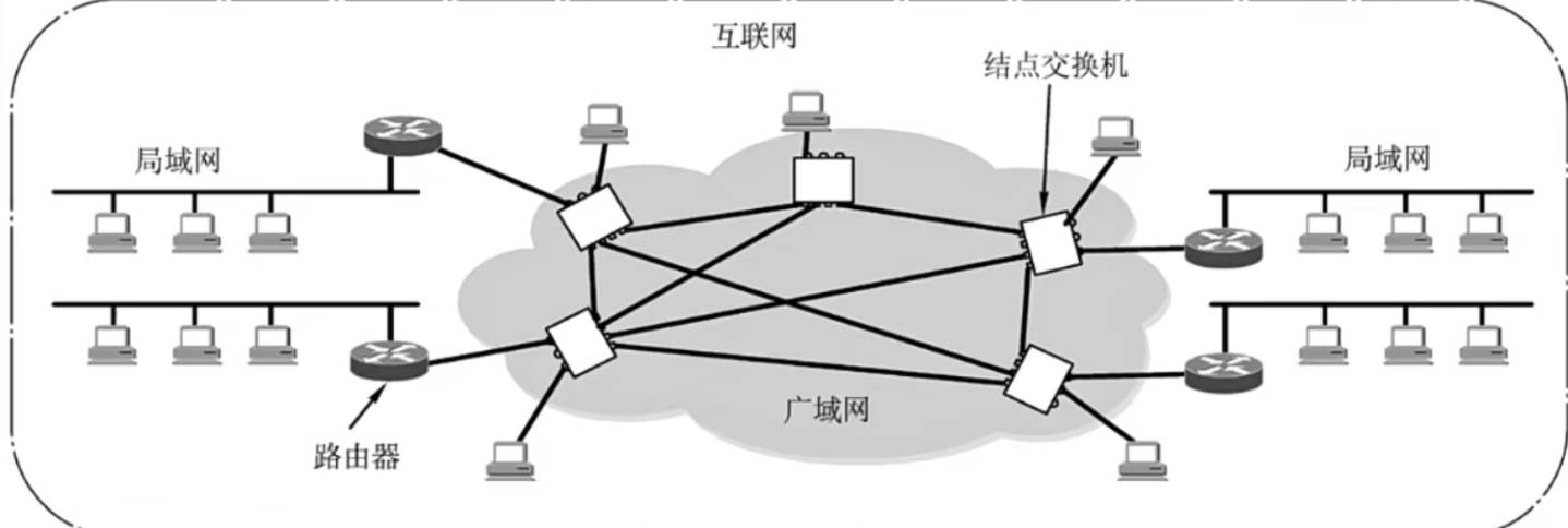 通过路由器,将多个局域网连接起来,组成了很大范围的网络,其内部有局域网这样的子网(解决了局域网的范围小的问题)