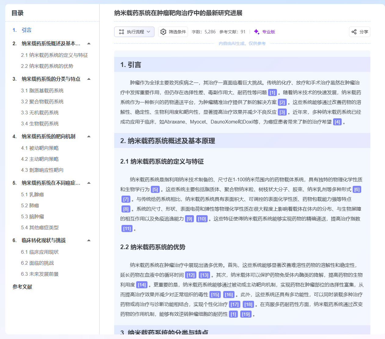 - 自动总结:系统会对检索到的文献进行提炼,生成研究目的、方法、结果等要点,减少逐篇阅读全文的时间。