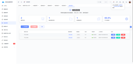 模型管理界面如下图所示,用户可上传模型并编辑相关信息