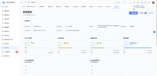 系统监控界面如下图所示,记录当前设备的运行情况