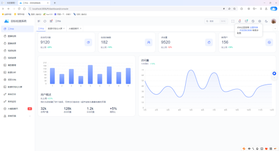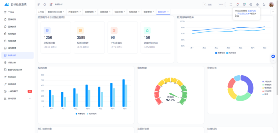 本目标检测系统包含工作台、图像检测、图像资源、视频检测、视频资源、模型管理、数据分析、项目文档、数据可视化大屏、系统日志、系统监控、大模型聊天和异常页面界面,其中系统主界面如下图所示: