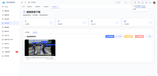 视频资源界面如下图所示,用户可查看上传和检测后的视频