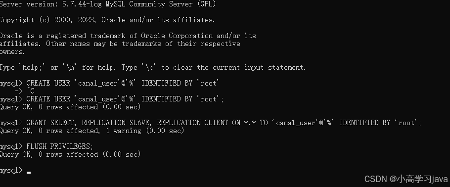 SELECT、REPLICATION SLAVE、REPLICATION CLIENT权限。