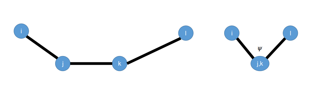 要构成一个二面角,一般需要4个原子\(i,j,k,l\)。因为二面角是力场中的成键相互作用,因此在一个二面角中至少存在这三根键:\(b_{ij},b_{jk},b_{kl}\)。我们知道,由三个不在一条直线上的点,就可以确定一个平面。在二面角中,所谓的"二面",指的是\(P_{ijk}\)和\(P_{jkl}\)这两个平面。换句话说,计算二面角,就是计算\(P_{ijk}\)和\(P_{jkl}\)这两个平面的夹角\(\psi\)。