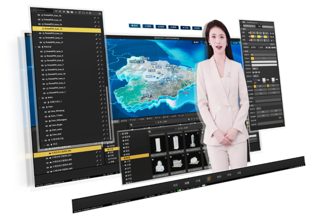 直接就是零代码开发,不需要你掌握复杂的3D建模和游戏开发技能,开箱即用,就能产出专业级的数字孪生可视化效果。