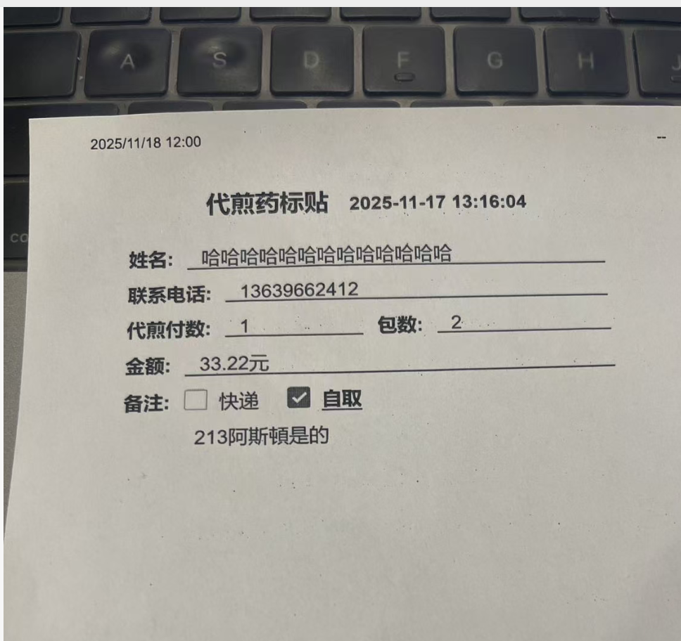 实际打印: