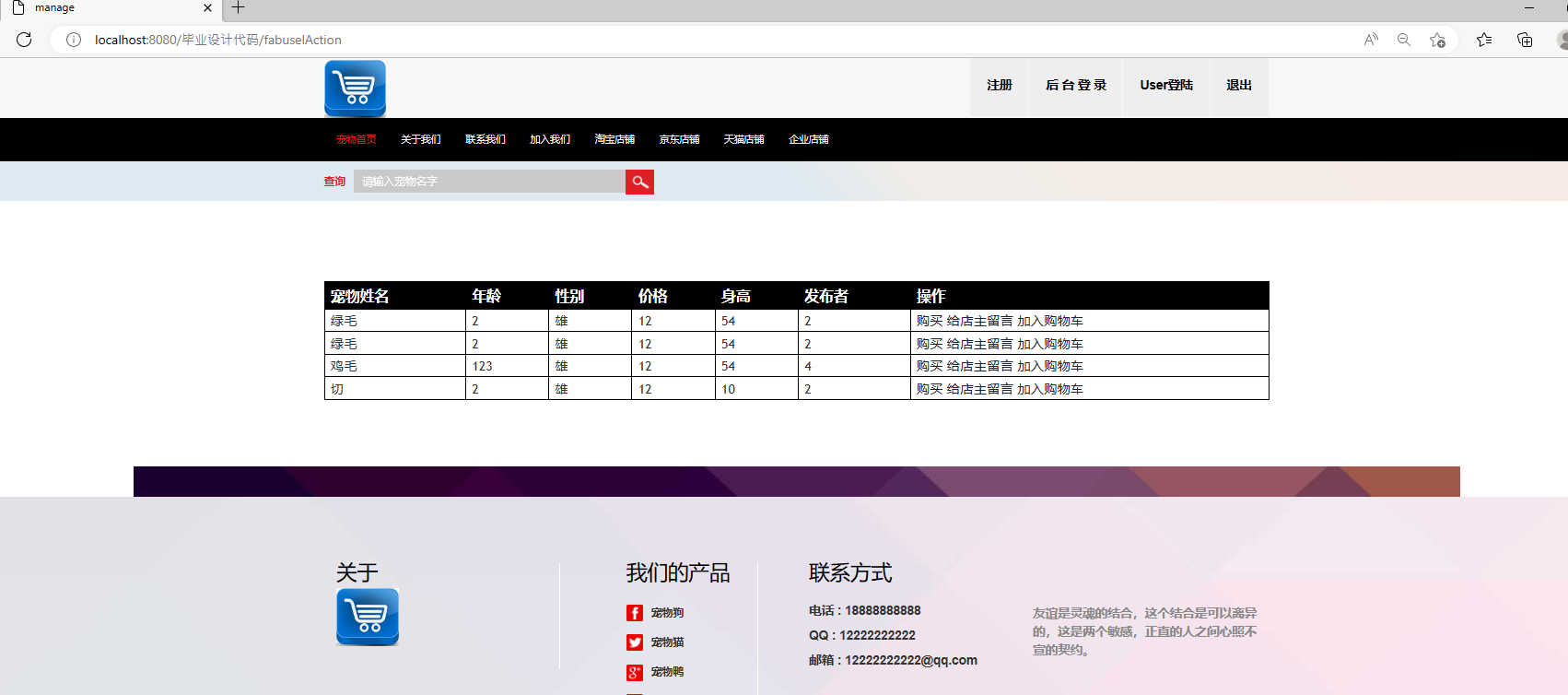 开发在线宠物销售系统时,以Idea为开发环境,用HTML、CSS搭建页面框架,jQueryjQuery实现交互效果,后端基于Java+SSH框架技术架构,搭配MySQL存储数据,构建完整交易链路。重点优化用户体验,前端用CSS网格布局展示宠物分类与详情,jQuery实现动态筛选与表单验证。后端通过SSH分层架构,Service层封装宠物库存与订单逻辑,Hibernate优化MySQL的 CRUD操作,确保交易数据安全。系统实现宠物展示、下单支付、售后跟踪等功能。开发中注重合规性,关联宠物检疫信息模块。