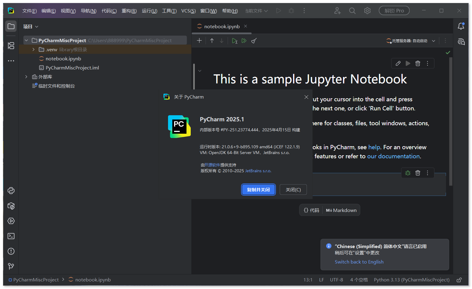 PyCharm 2025.1 是 JetBrains 推出的 Python 开发旗舰级 IDE,延续了 "智能编码、全栈兼容、生态完善" 的核心定位,在 2025 年度首个重大更新中,聚焦 AI 辅助开发、性能优化、全栈协同与数据科学工具链强化,不仅是 Python 开发者的首选工具,更全面覆盖 Web 开发、数据科学、机器学习、嵌入式开发等多场景,适配从个人项目到企业级应用的全流程开发需求。