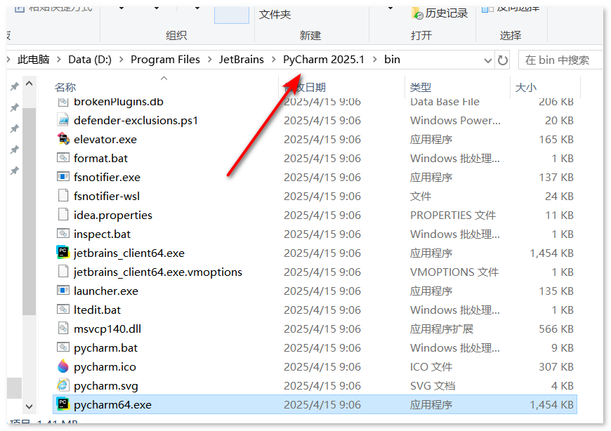 14点击路径地址栏中的【PyCharm 2025.1】