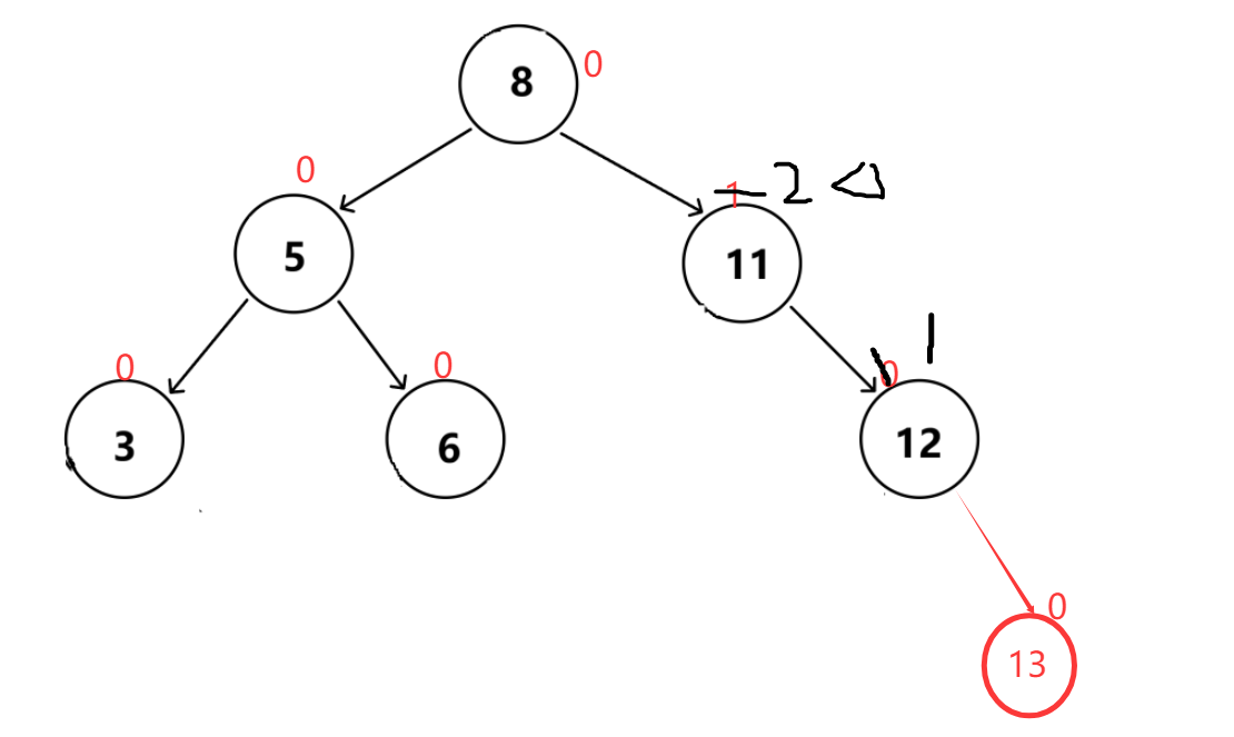 若新节点插入在父节点的右子树,则父节点的平衡因子 +1;