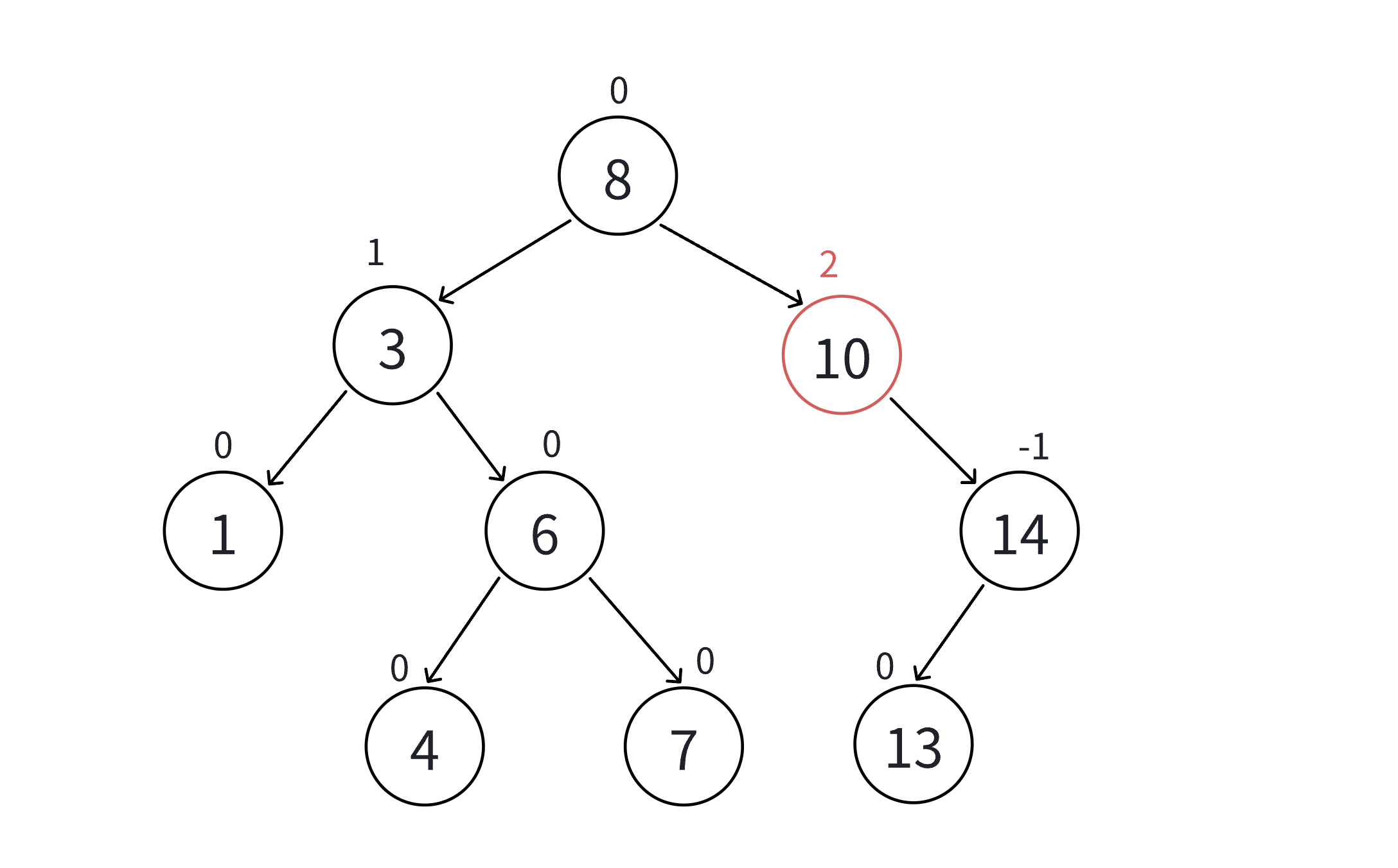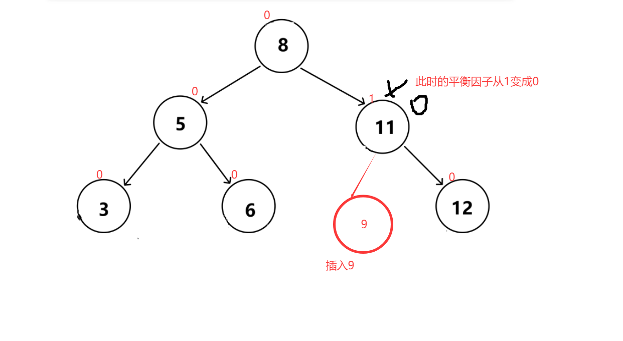 若新节点插入在父节点的左子树,则父节点的平衡因子 −1。