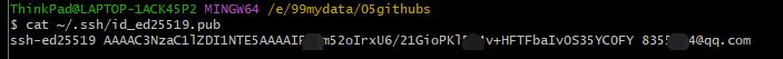 cat ~/.ssh/yourfilename.pub #换成你的公钥文件名 -