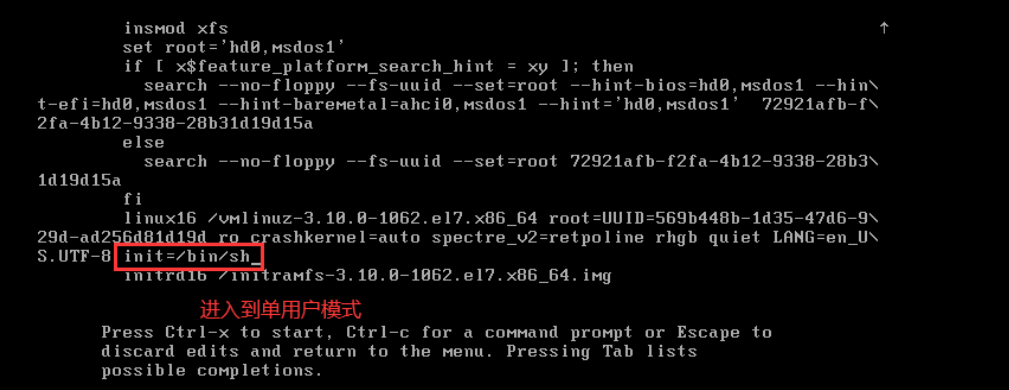 接着输入完成之后,直接按快捷键Ctrl + X 进入单用户模式