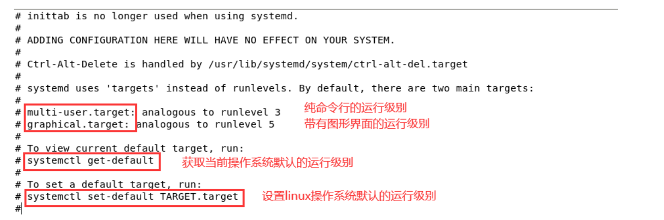 在centos7中,有一个文件/etc/inittab文件中,描述了运行级别的相关信息