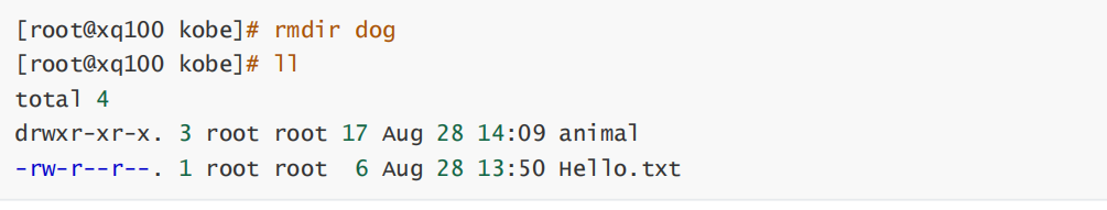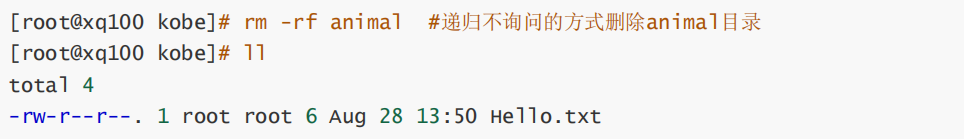 如果我们要删除非空目录或者文件,我们使用rm -rf命令实现(r 递归删除 f不询问删除)。