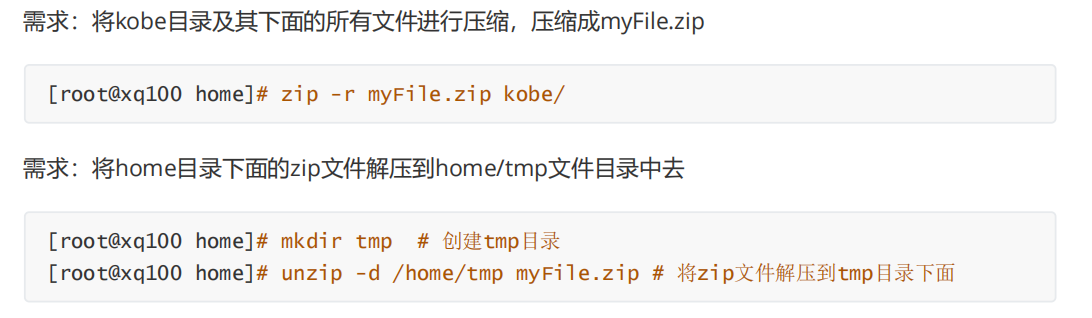 zip [选项] XXX.zip 将要压缩的内容 (压缩文件和目录的命令)
