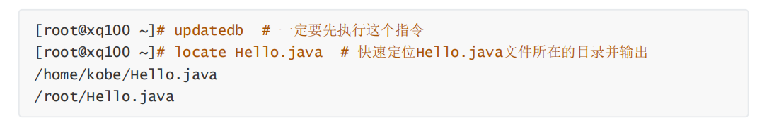 需求:用locate指令快速定位 Hello.java 文件所在目录 locate Hello.java