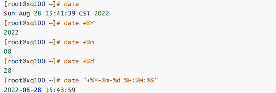 date "+%Y-%m-%d %H:%M:%S"(功能描述:显示年月日时分秒)