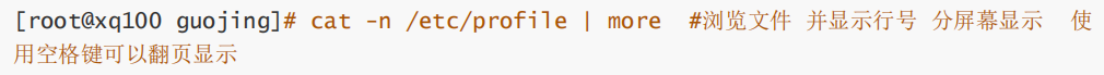 cat /etc/profile > /home/guojing/myprofile (将etc/profile 重定向到home目录下的myprofile 没有会自动创建)