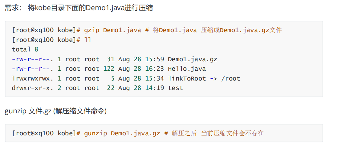 gzip 压缩文件(将文件压缩为*.gz的文件,原文件被压缩后不存在。)
