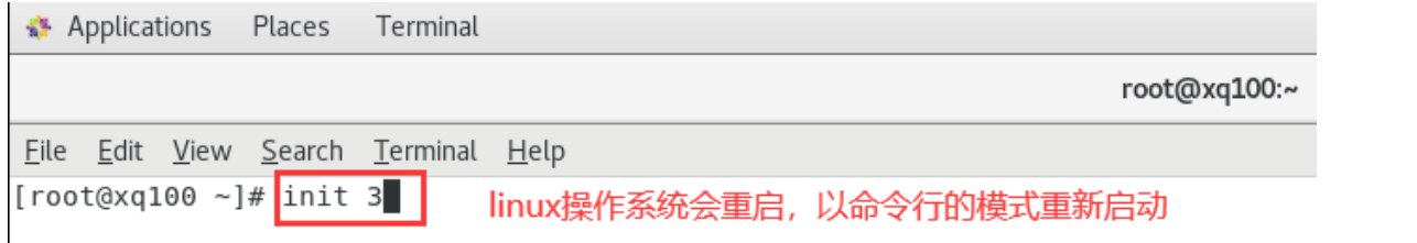 我们在linux操作系统(带有图形化界面的操作系统)输入init 3。此时linux操作系统就会以纯命令行模式 启动