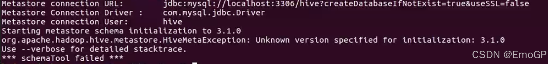 Org.apache.hadoop.hive.metastore.HiveMetaException: Unknown version specified for initialization: 3.1.0
