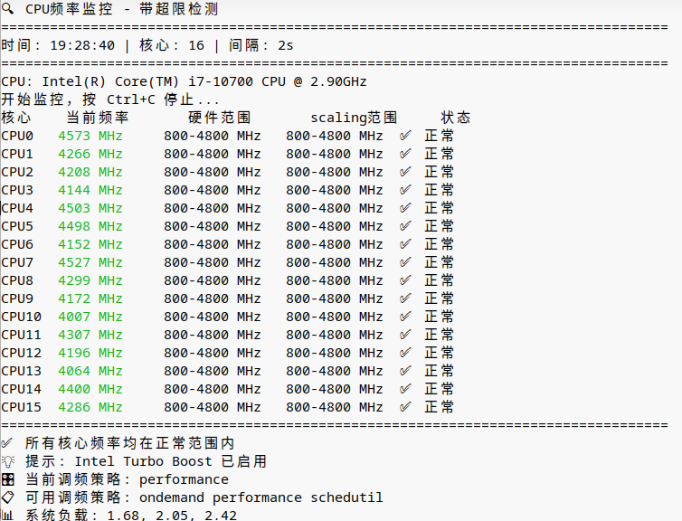 printf "\033[K✅ 所有核心频率均在正常范围内\n"