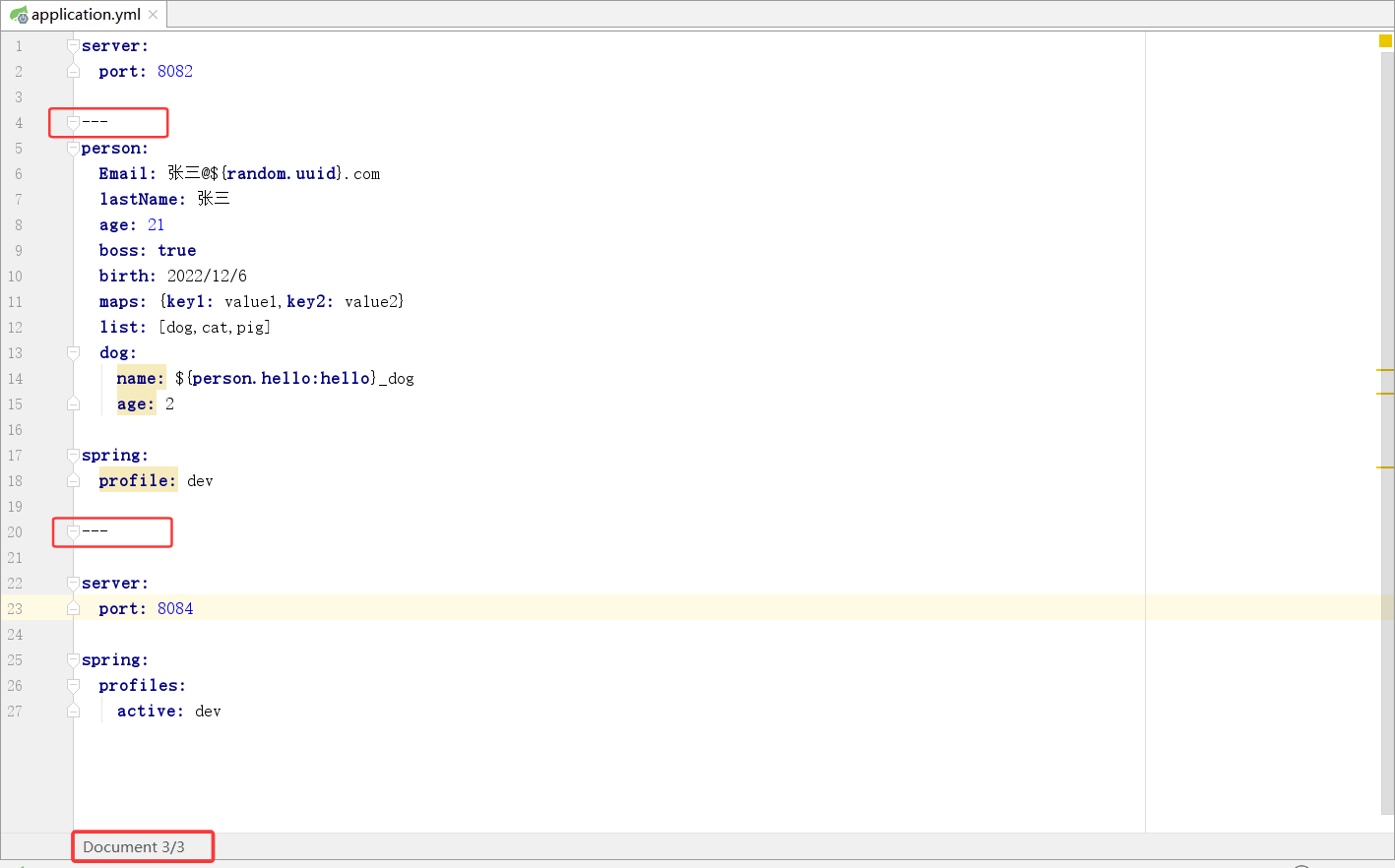 用 --- 分隔,可将所有环境配置写在同一个 application.yml 文件中,更简洁