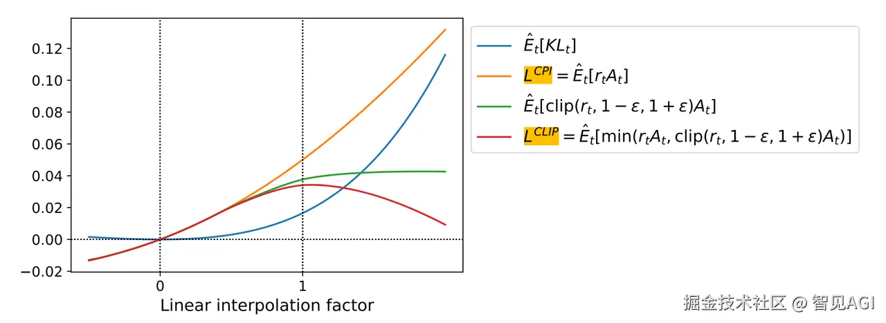 偏离 1 太多,就会被裁剪到 [1−ϵ,1+ϵ]