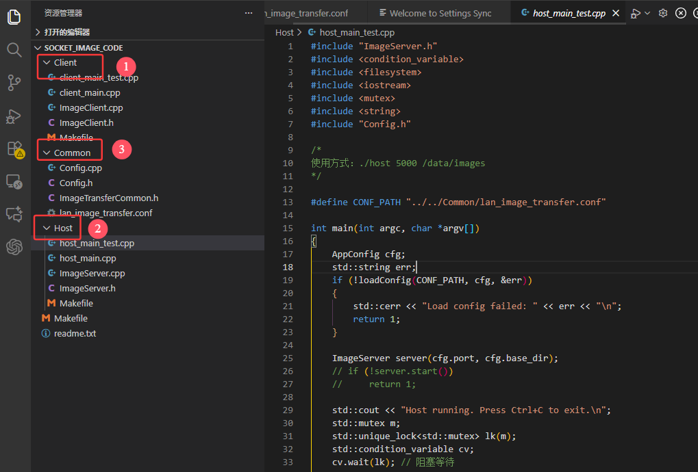 也就是说Host的代码构建的为多线程文件接收服务器,专门用于存储图片或数据集文件。