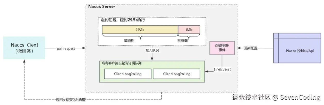 - 配置无变化:等待 29.5s 后触发自动检查机制,返回配置;