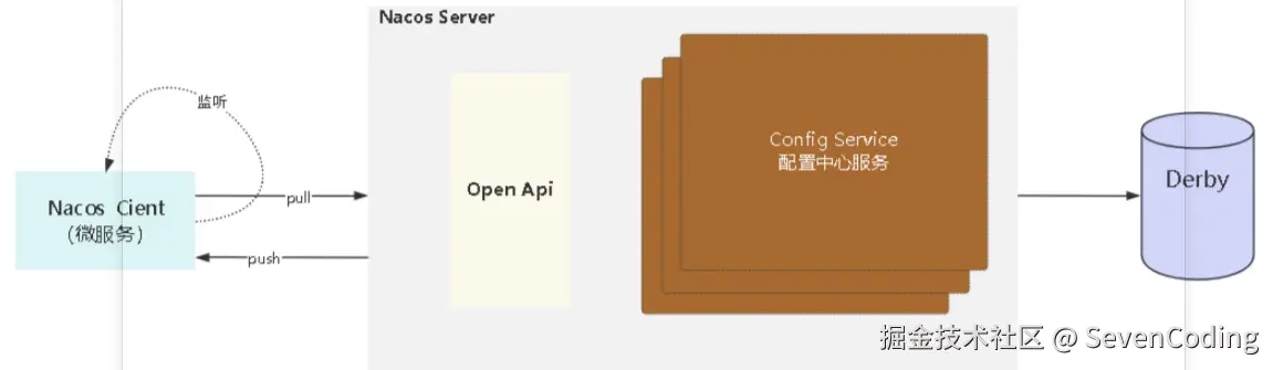 - 配置信息存储:Nacos默认使用内嵌数据库Derby来存储配置信息,还可以采用MySQL等关系型数据库。