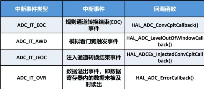 (2)中断触发:转换结束、注入转换结束、模拟看门狗超限均可产生中断。
