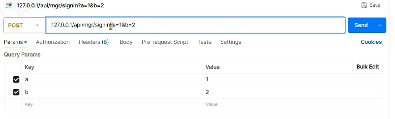 URL参数可以直接在URL输入框里面 整体输入 ,也可以在下方 Params 栏里面 逐个输入,参数之前用?参数之间由&隔开