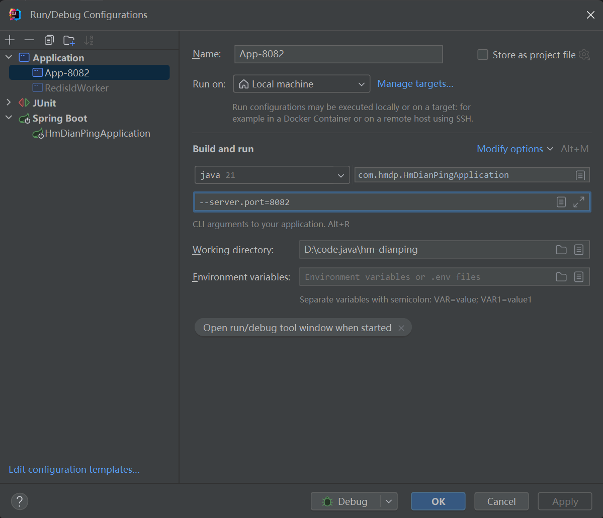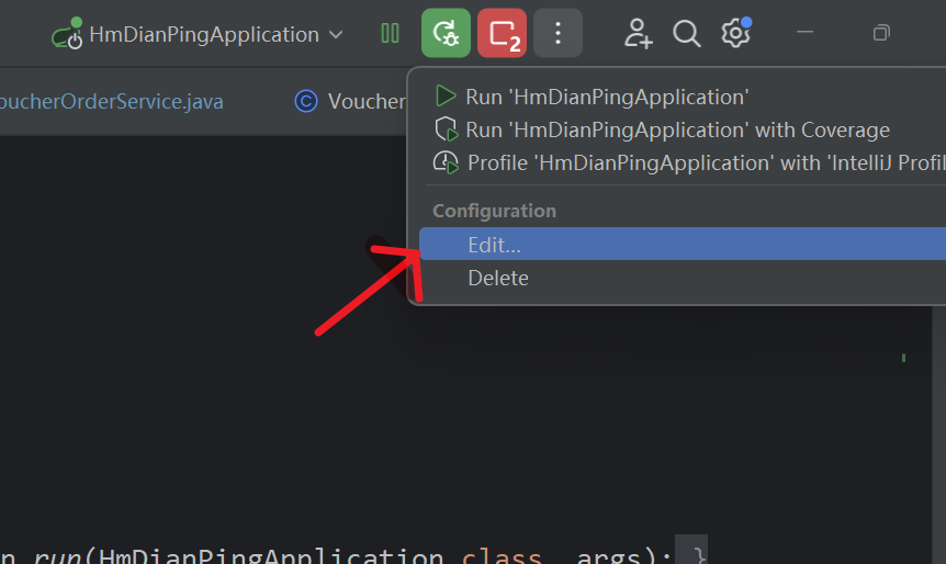 - 点击右上角运行配置下拉菜单 → Edit Configurations...