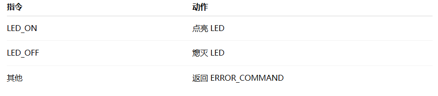 "LED_ON"指令自动执行动作,并回传执行结果