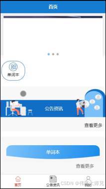 用户登陆小程序端,可以对首页,公告资讯,我的等功能进行详细操作,如图5-3所示。