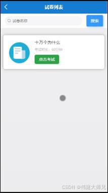 试卷列表,在试卷列表页面可以查看试卷名称,考试时长等信息,并进行点击考试操作;如图5-5所示。